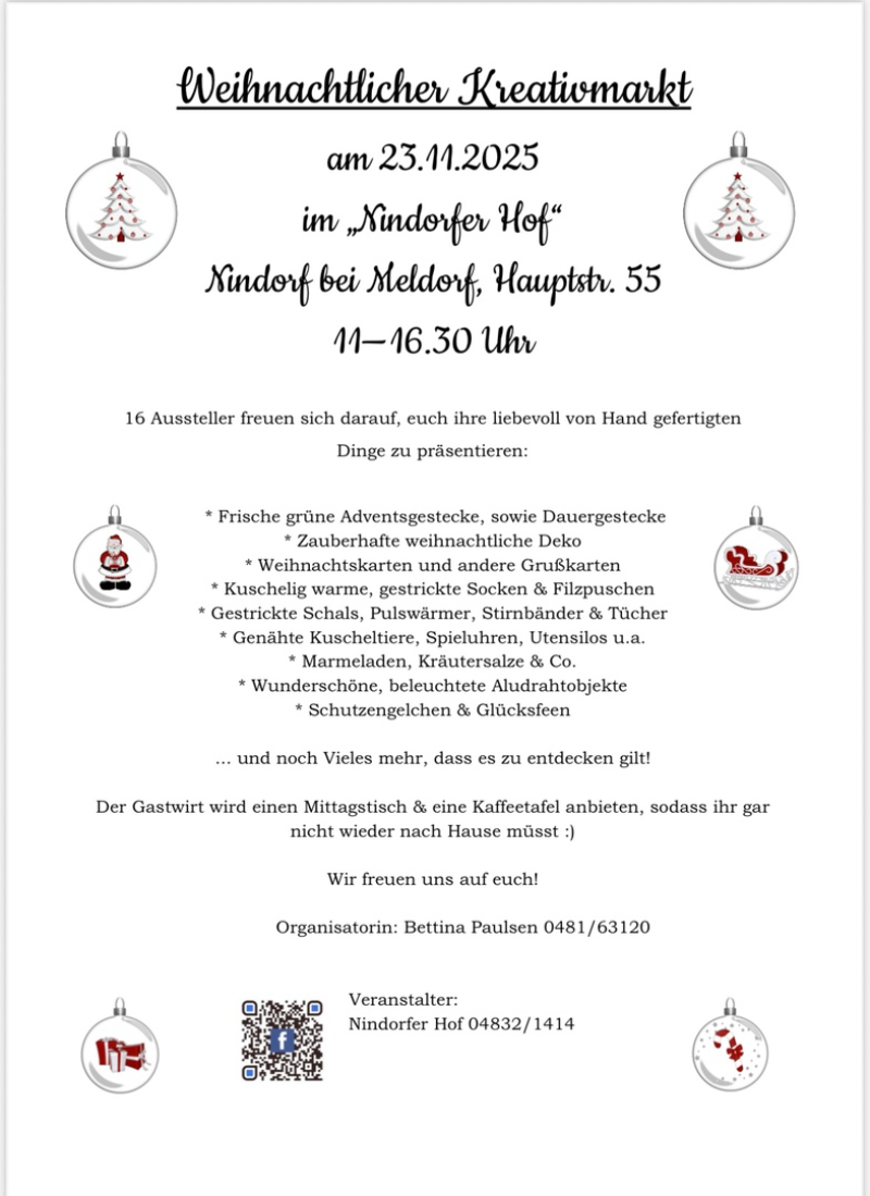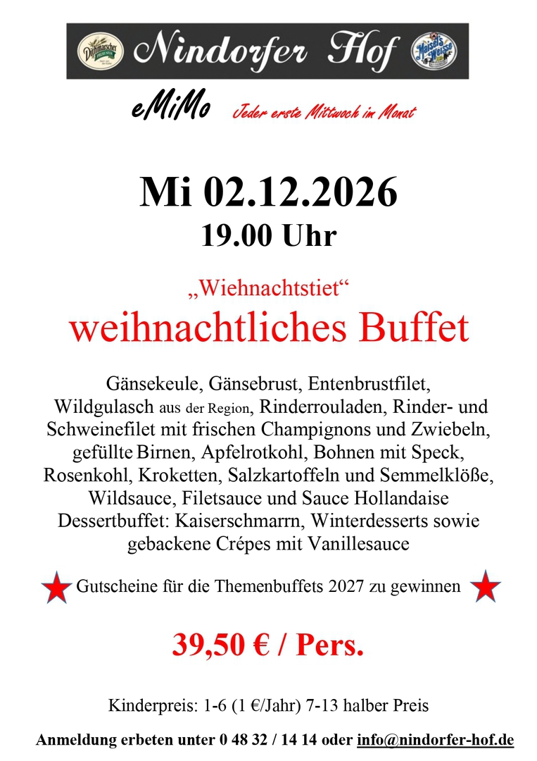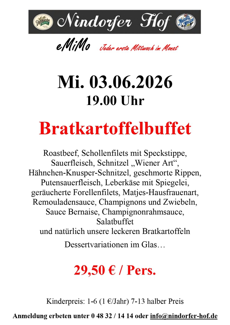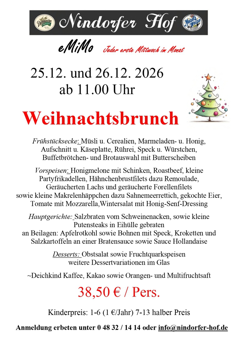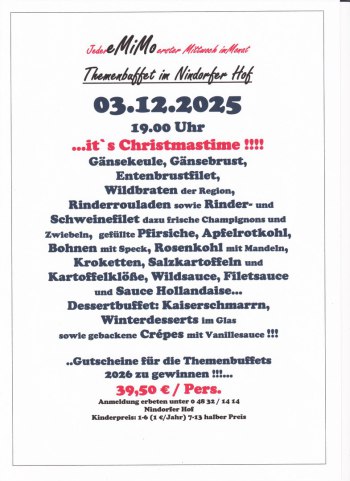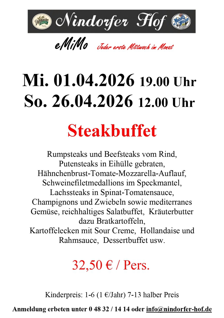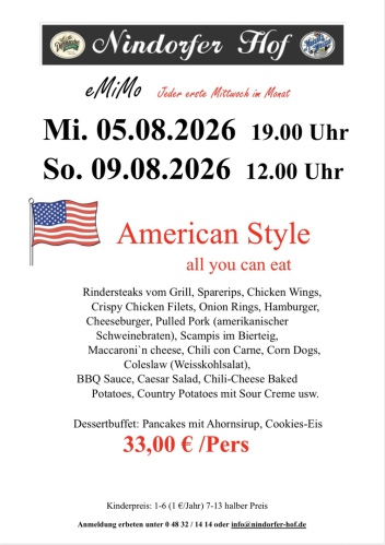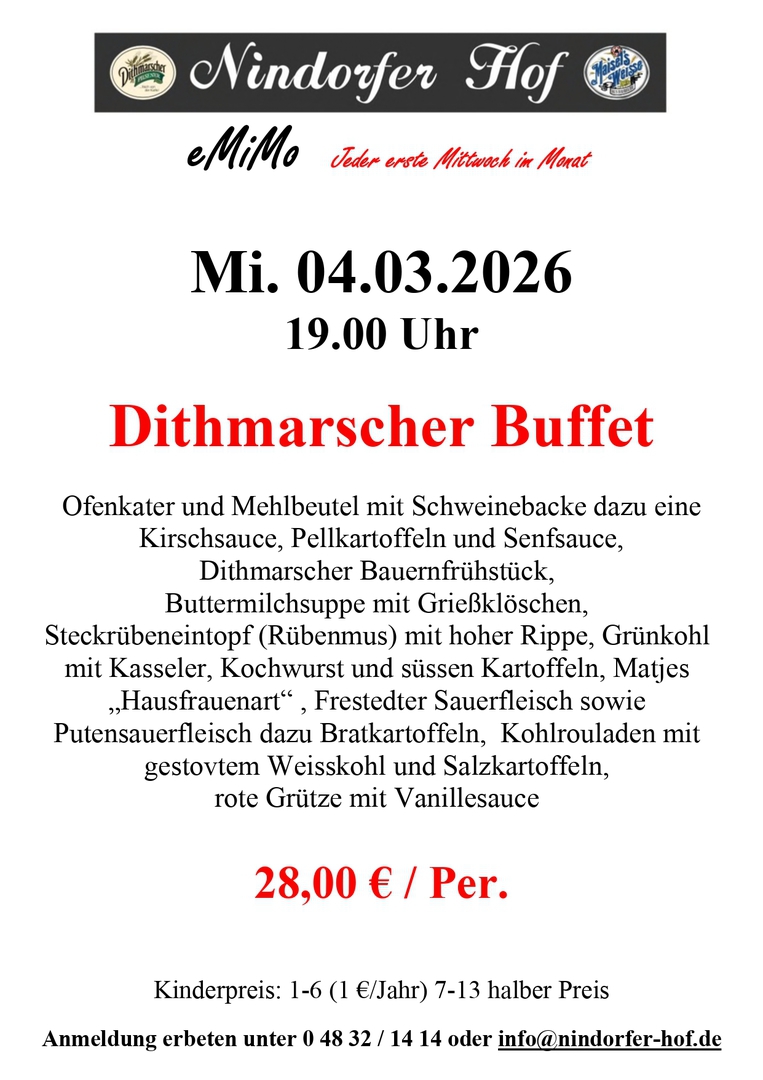 Nindorf, vor den Toren der Domstadt Meldorf, auch das Blankenese von Meldorf genannt, bietet Ihnen nicht nur Natur pur. Zum Durchfahren viel zu schade, schauen Sie auch hinter die Kulissen, genießen Sie die Umgebung. Der Nindorfer Hof weist auf eine lange Tradition zurück und war bis zum Jahre 1997 in Besitz der Familie Stange. 1997 entstand dann aus Stanges Gasthof der Nindorfer Hof. Bernd Gadermann gelernter Kaufmann und Restaurantfachmann zog es in den Ort Nindorf um dort den Gasthof mit Restaurant und Saal umzubauen und zu übernehmen. Er folgte auch seinen Wurzeln, denn sein Großvater war hier lange Zeit als Dorflehrer im Amt. Nach der Renovierung im Jahr 1997, wo die kompletten sanitären Anlagen, Umbauten im Saal und Küchenbereich, sowie sämtliche Erneuerungen der technischen Anlagen vorgenommen wurden, vollendete im Jahr 2008 ein komplett neues Saaldach die größten Umbauten. Seit der Eröffnung im Dezember 1997 wurden schon viele verschiedene Veranstaltungen im Nindorfer Hof durchgeführt. Weit über die Grenzen der Gemeinde hinaus hat sich der gutbürgerliche Gasthof einen Namen geschaffen. Familienfeiern, Firmenfeste sowie Show- und Tanzveranstaltungen sind Anlaufpunkt von vielen Gästen jeder Altersklasse. Mit ausgefallenen Dekorationen bis zum edlen Ambiente macht das motivierte Team vom Nindorfer Hof jede Veranstaltung zu einem ganz besonderen Anlass.